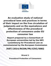 On 26 January 2018, the European Commission published the second General Report of the study on procedural law undertaken by the Max Planck Institute Luxembourg. This strand of the study concerned the effect of divergences in national procedural laws on the equivalence and effectiveness of the procedural protection of consumers under EU consumer law.